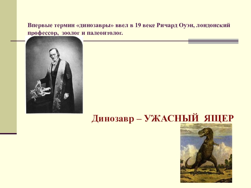 Впервые термин «динозавры» ввел в 19 веке Ричард Оуэн, лондонский профессор,