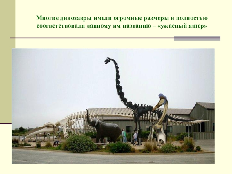 Слайд 8Многие динозавры имели огромные размеры и полностью соответствовали данному им названию