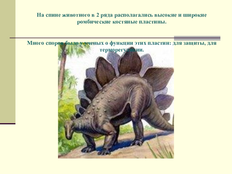 На спине животного в 2 ряда располагались высокие и широкие ромбические