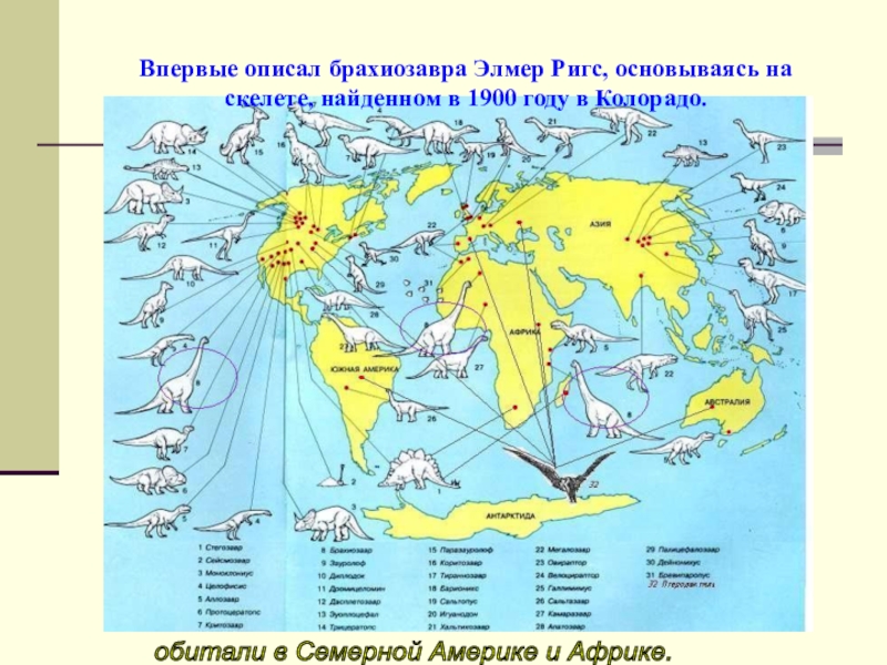Слайд 22Впервые описал брахиозавра Элмер Ригс, основываясь на скелете, найденном в 1900