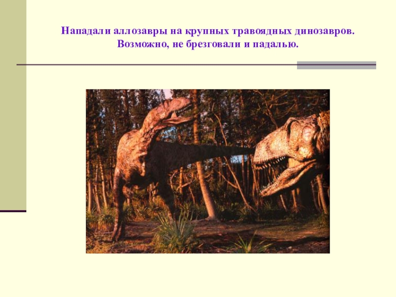 Слайд 45Нападали аллозавры на крупных травоядных динозавров. Возможно, не брезговали и падалью.