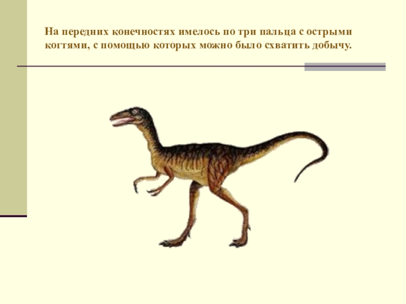 Слайд 41На передних конечностях имелось по три пальца с острыми когтями, с