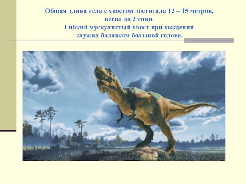 Слайд 48Общая длина тела с хвостом достигала 12 – 15 метров,