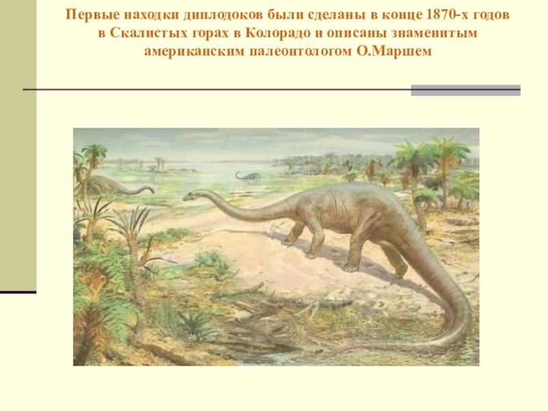 Слайд 17Первые находки диплодоков были сделаны в конце 1870-х годов в Скалистых