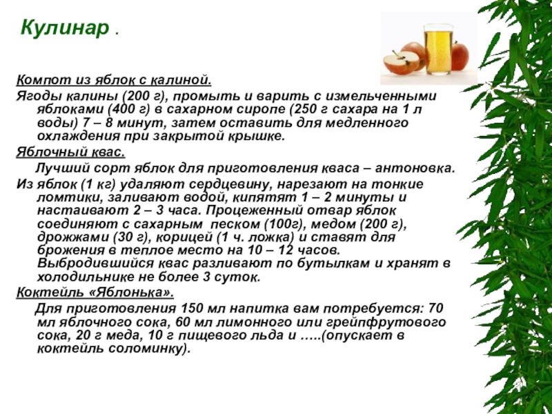 кондитерам. Они расскажут, какие напитки, салаты и выпечку можно приготовить из яблок.