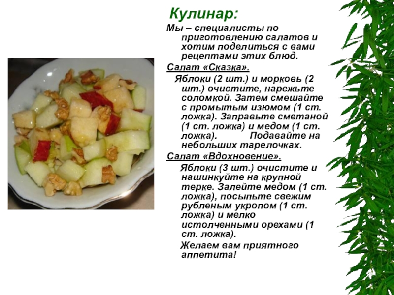 Мы – специалисты по приготовлению салатов и хотим поделиться