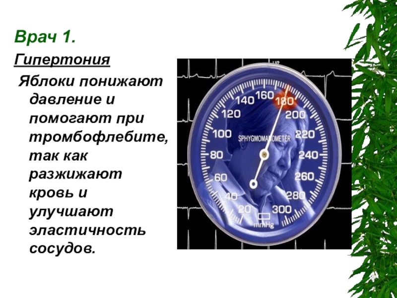 Яблоки понижают давление и помогают при тромбофлебите, так как разжижают