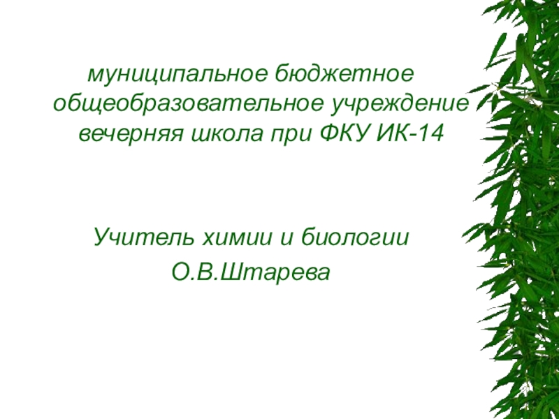 Слайд 36муниципальное бюджетное общеобразовательное учреждение вечерняя школа при ФКУ ИК-14