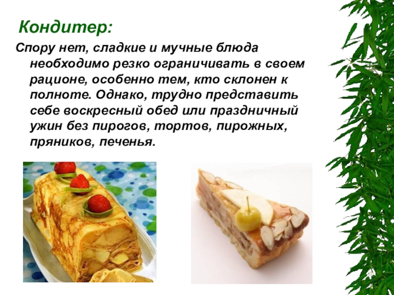 Спору нет, сладкие и мучные блюда необходимо резко ограничивать