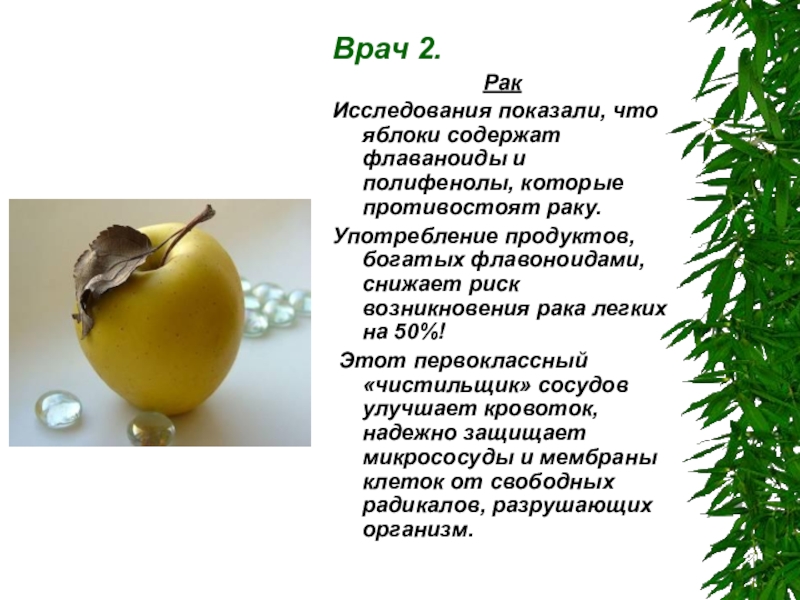 Исследования показали, что яблоки содержат флаваноиды и полифенолы, которые противостоят