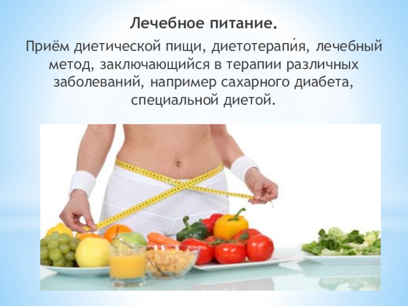 Приём диетической пищи, диетотерапи́я, лечебный метод, заключающийся в терапии различных