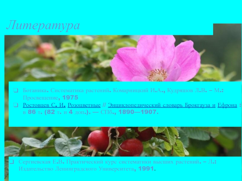 Сергиевская Е.В. Практический курс систематики высших растений. – Л.: Издательство Ленинградского Университета, 1991.