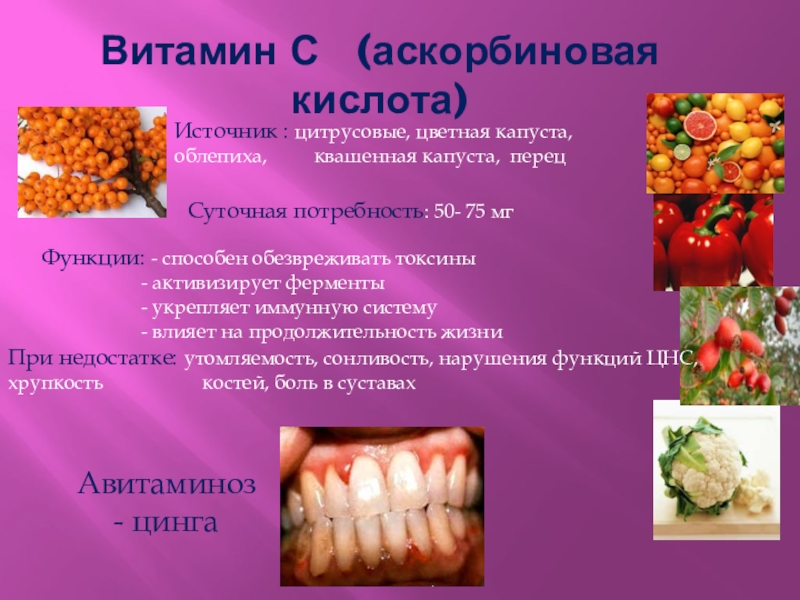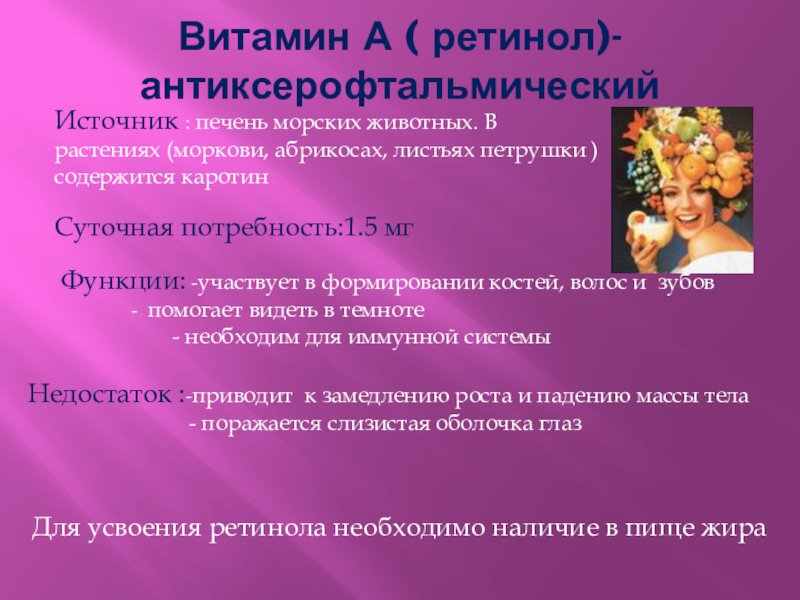 Суточная потребность : мужчины 80 мг, женщины 65 мг