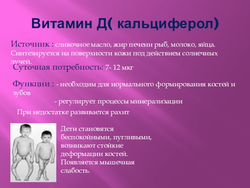 Дети становятся беспокойными, пугливыми, возникают стойкие деформации костей. Появляется мышечная слабость.