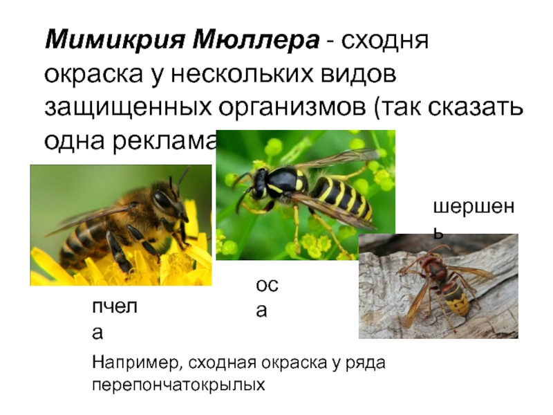 Например, сходная окраска у ряда перепончатокрылых