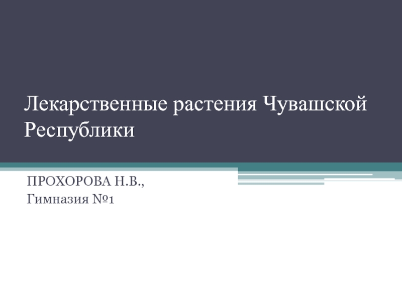 Лекарственные растения Чувашской Республики ПРОХОРОВА Н.В.,Гимназия №1