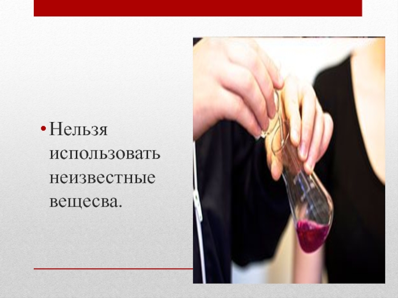 Слайд 6Нельзя использовать неизвестные вещесва.