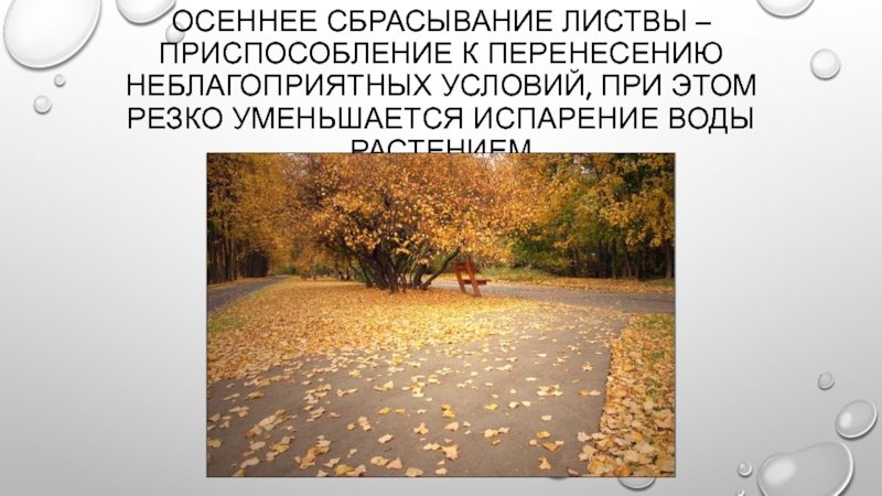 Слайд 10осеннее сбрасывание листвы – приспособление к перенесению неблагоприятных условий, при этом