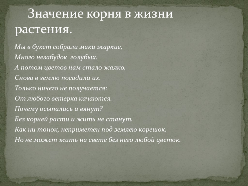 Значение корня в жизни растения.