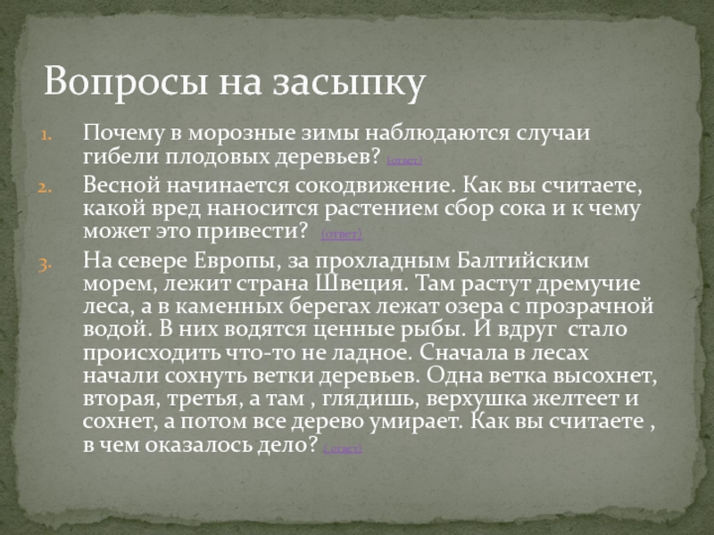 Вопросы на засыпку