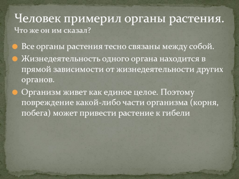 Человек примерил органы растения. Что же он им сказал?