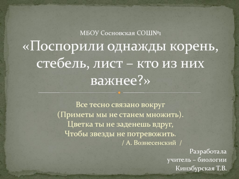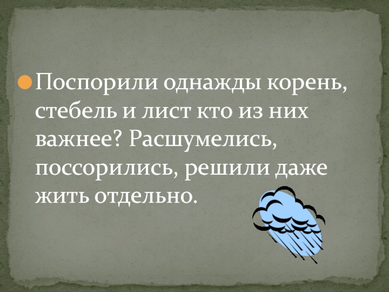 «Поспорили однажды корень, стебель, лист – кто из них важнее?»