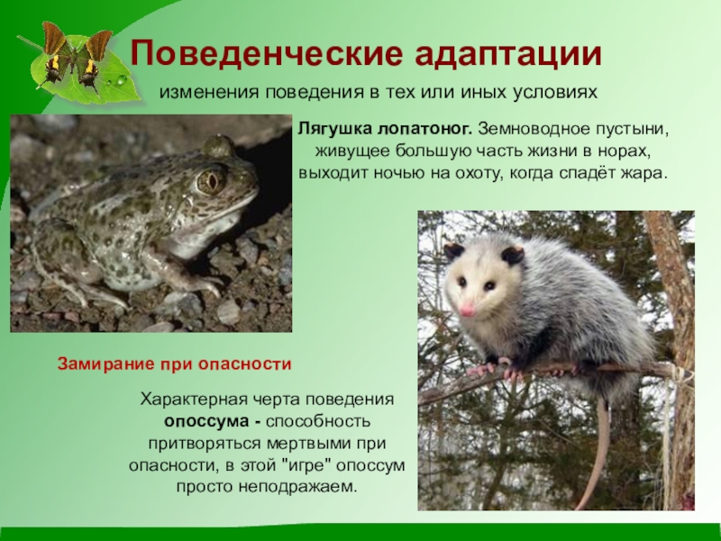 Эффект покровительственной окраски повышается при ее сочетании с соответствующим поведением: в момент опасности многие животные замирают, принимая позу покоя.