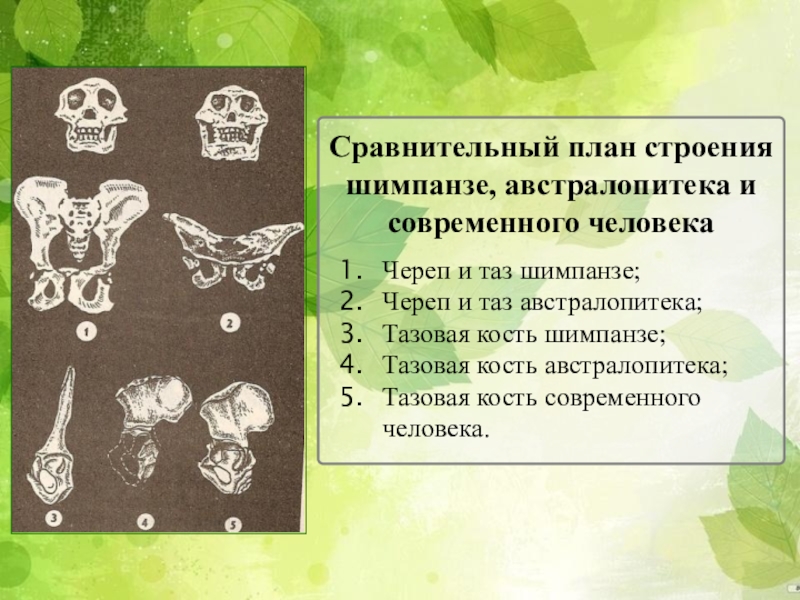 Сравнительный план строения шимпанзе, австралопитека и современного человека