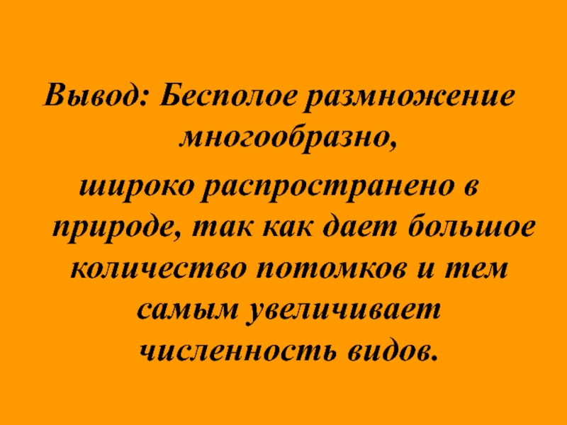 Слайд 11Вывод: Бесполое размножение многообразно,