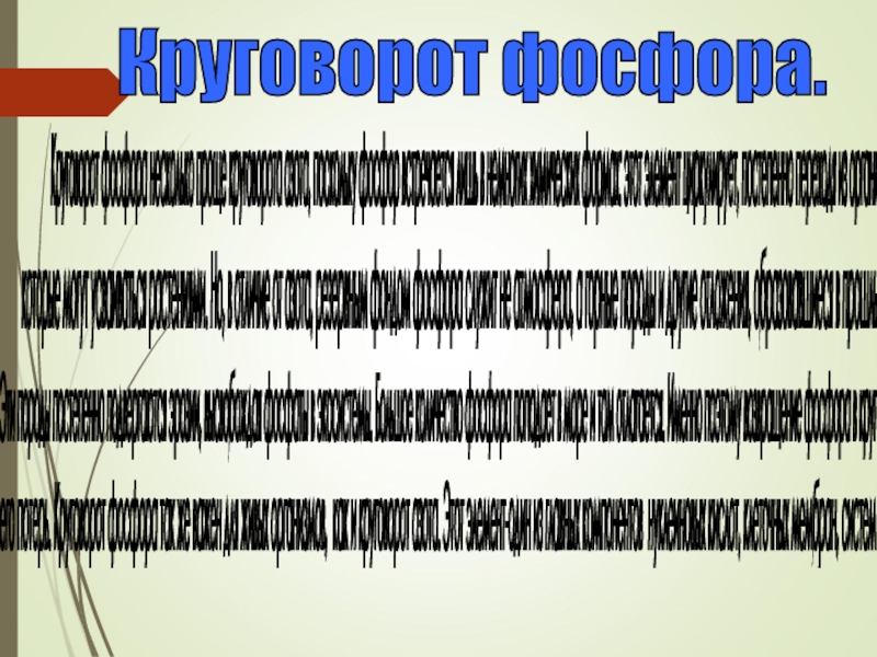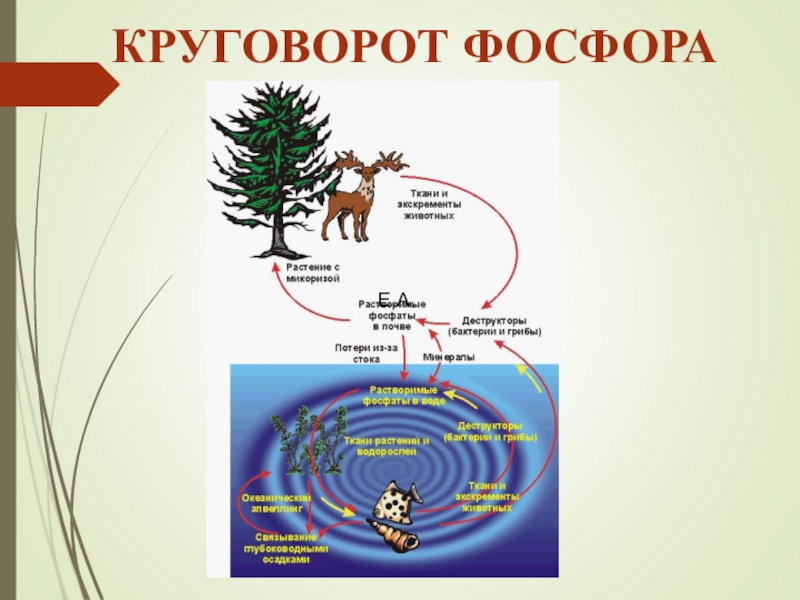 его потерь. Круговорот фосфора так же важен для живых организмов, как и круговорот азота. Этот элемент-один из главных компонентов нуклеиновых кислот, клеточных мембран, систем переноса