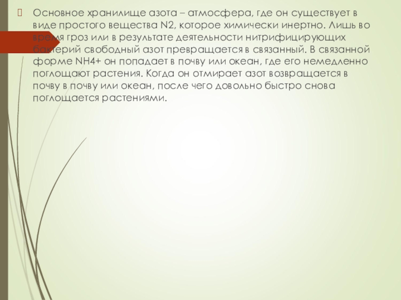 которые могут усваиваться растениями. Но, в отличие от азота, резервным фондом фосфора служит не атмосфера, а горные породы и другие отложения, образовавшиеся в прошлые геологические эпохи.