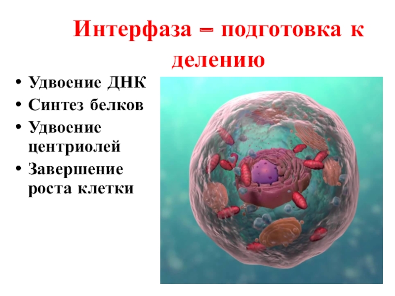 Удвоение ДНКСинтез белковУдвоение центриолейЗавершение роста клеткиИнтерфаза – подготовка к делению