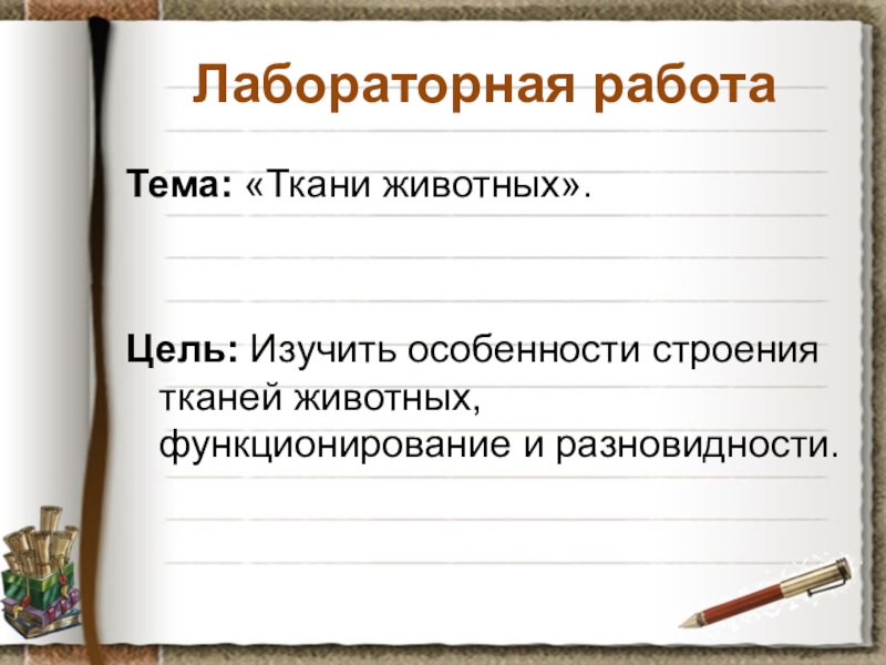 Лабораторная работа Тема: «Ткани животных».Цель: Изучить особенности строения тканей животных, функционирование и разновидности.