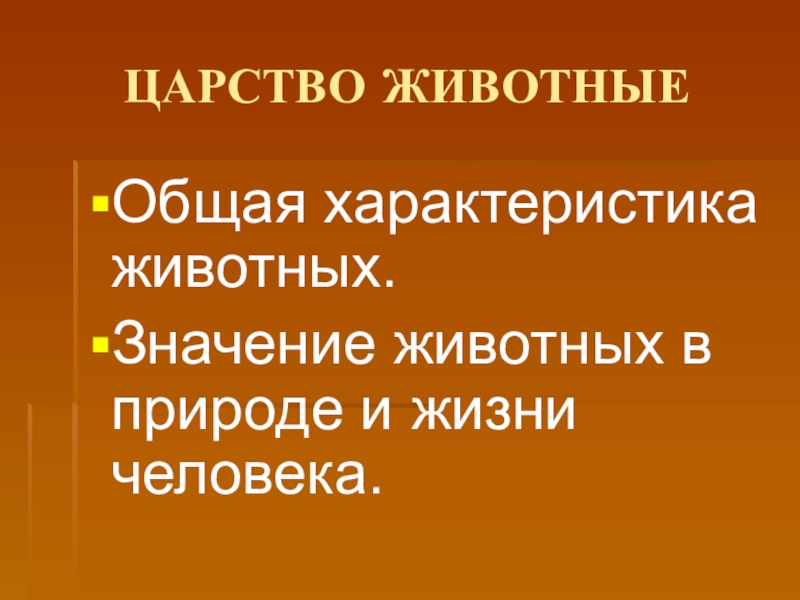 ЦАРСТВО ЖИВОТНЫЕОбщая характеристика животных.Значение животных в природе и жизни человека.