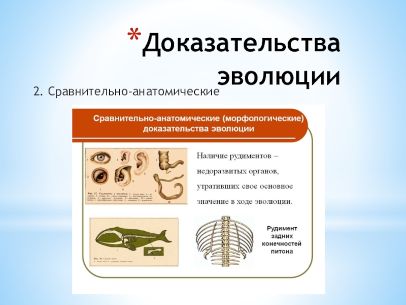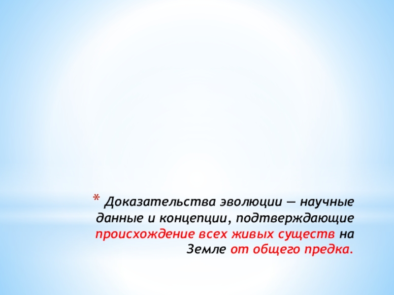 Слайд 2Доказательства эволюции — научные данные и концепции, подтверждающие происхождение всех живых