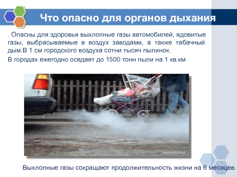 Выхлопные газы сокращают продолжительность жизни на 6 месяцев.