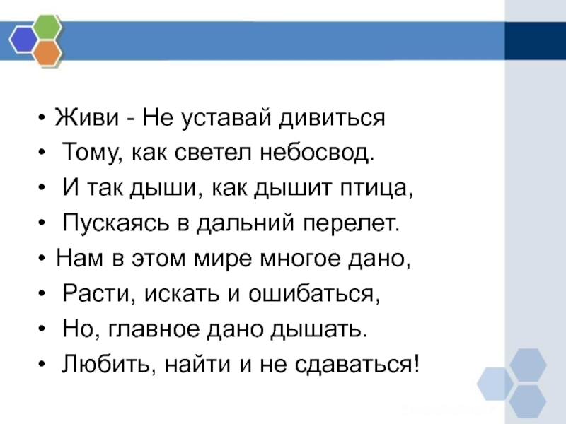 Это сайт презентаций, где можно хранить и обмениваться своими презентациями, докладами, проектами, шаблонами в формате PowerPoint с другими пользователями. Мы помогаем школьникам, студентам, учителям, преподавателям хранить и обмениваться учебными материалами.