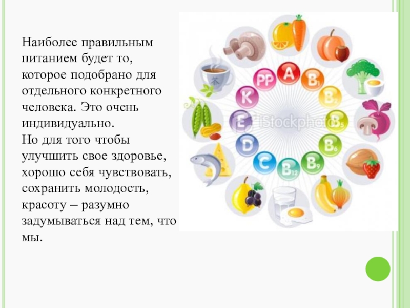 Слайд 7Наиболее правильным питанием будет то, которое подобрано для отдельного конкретного человека.