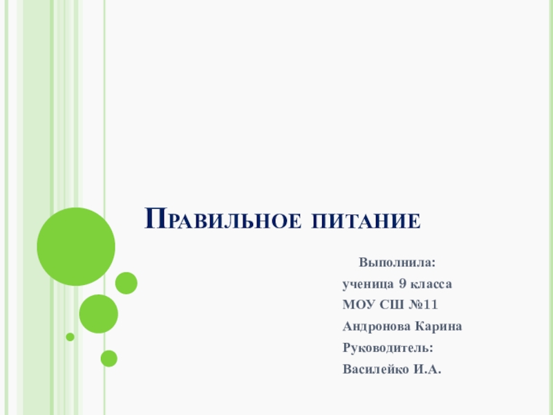 Правильное питание  Выполнила:ученица 9 классаМОУ СШ №11Андронова КаринаРуководитель:Василейко И.А.