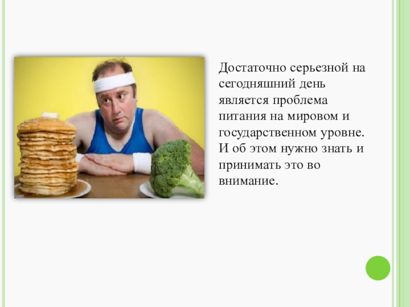 Достаточно серьезной на сегодняшний день является проблема питания на мировом и государственном уровне. И об этом нужно
