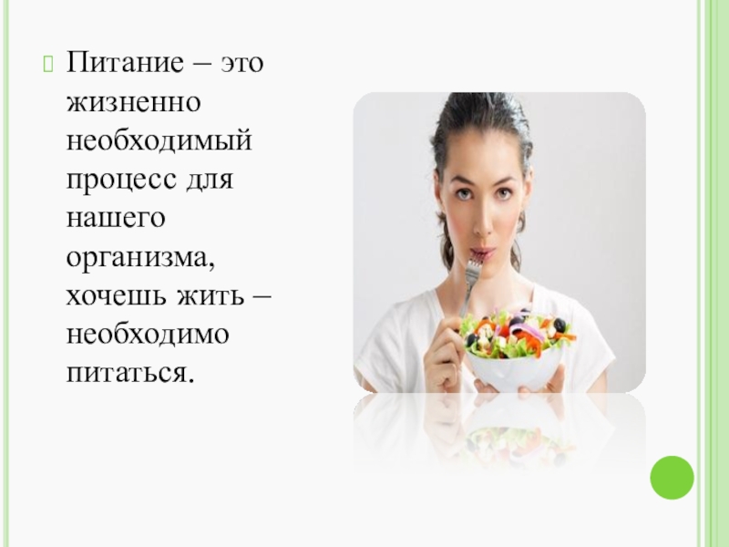 Слайд 2Питание – это жизненно необходимый процесс для нашего организма, хочешь жить