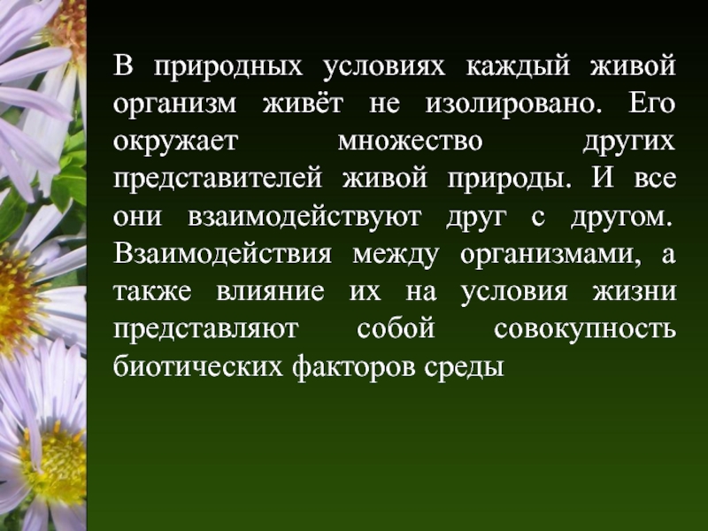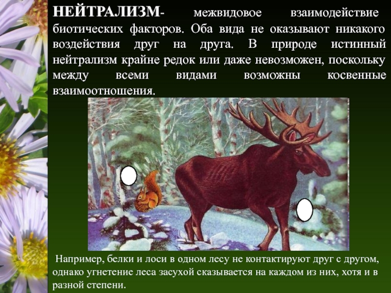Например, белки и лоси в одном лесу не контактируют друг с другом, однако угнетение леса засухой сказывается на каждом из них, хотя и в разной степени.