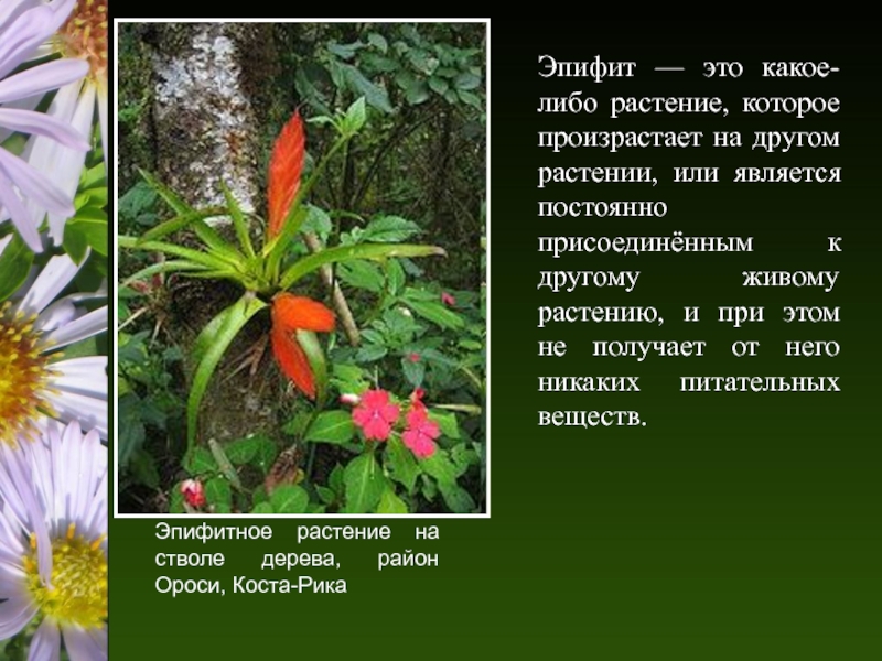 Эпифитное растение на стволе дерева, район Ороси, Коста-Рика