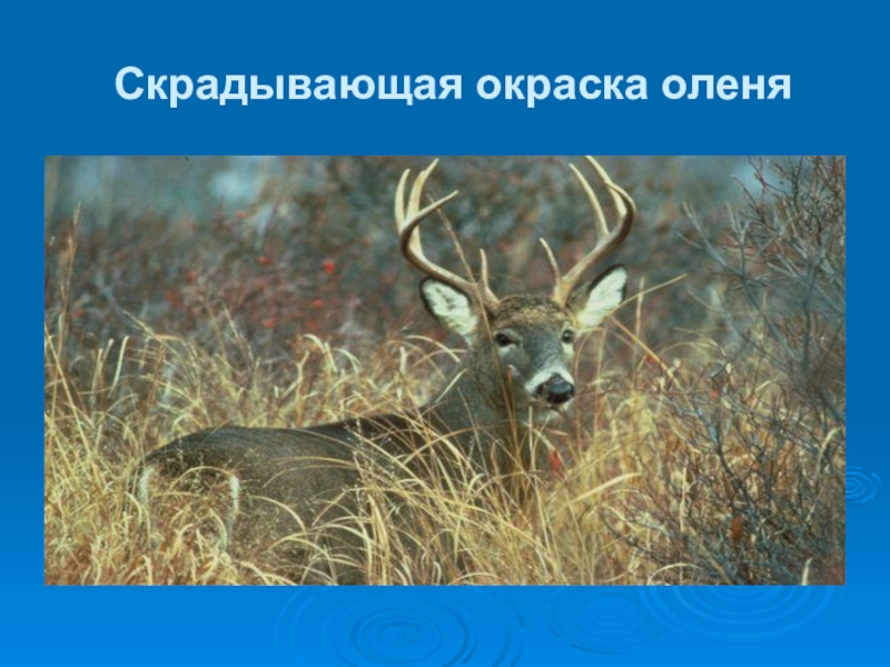 Слайд 33Скрадывающая окраска оленя