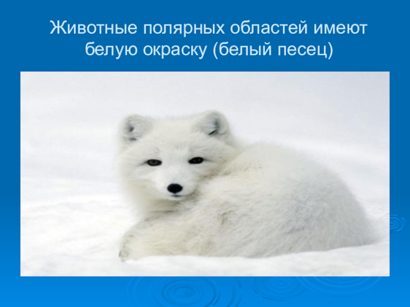 Слайд 21Животные полярных областей имеют белую окраску (белый песец)