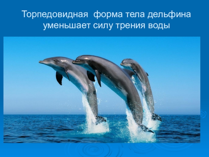 Торпедовидная форма тела дельфина уменьшает силу трения воды