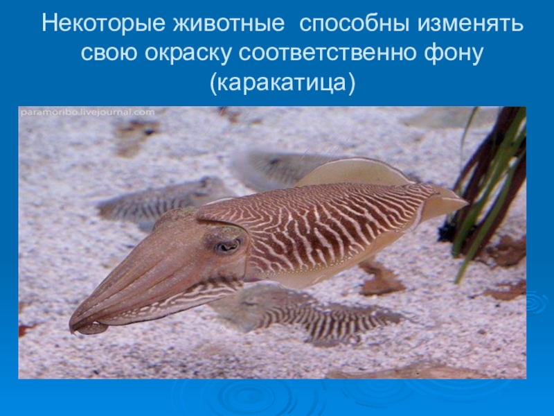 Слайд 25Некоторые животные способны изменять свою окраску соответственно фону (каракатица)