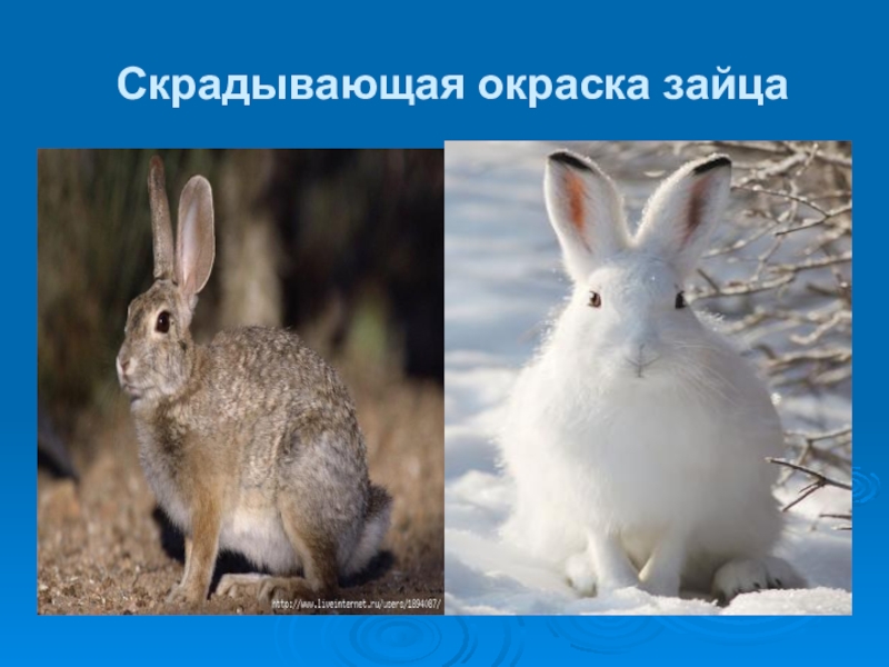 Слайд 34Скрадывающая окраска зайца