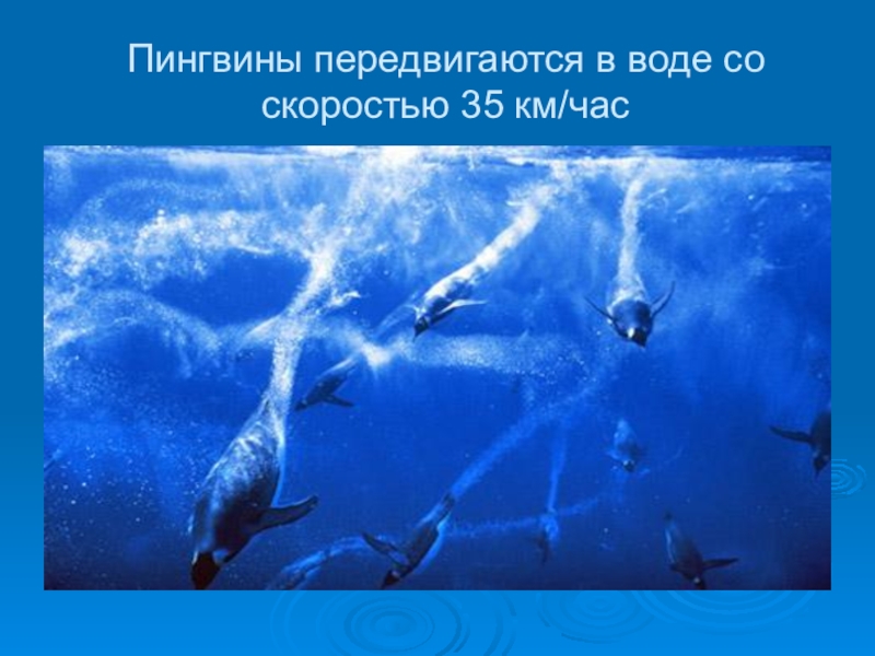 Слайд 8Пингвины передвигаются в воде со скоростью 35 км/час