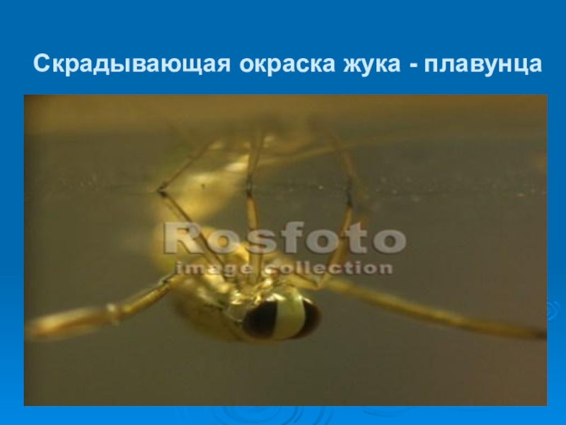 Слайд 28Скрадывающая окраска жука - плавунца